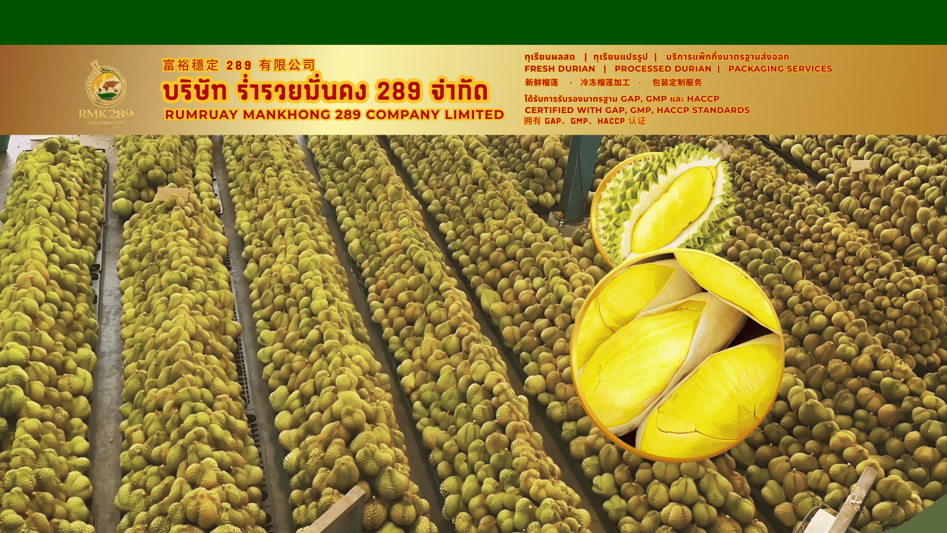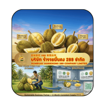 บริษัท ร่ำรวยมั่นคง 289 จำกัด เรามุ่งมั่นส่งมอบทุเรียนไทยที่ดีที่สุดสู่ตลาดโลก ด้วยคุณภาพและความซื่อสัตย์ที่เป็นเลิศอย่างไม่ยอมลดละ