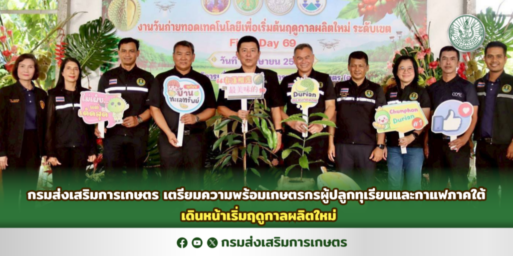 กรมส่งเสริมการเกษตร เตรียมความพร้อมเกษตรกรผู้ปลูกทุเรียนและกาแฟภาคใต้ เดินหน้าเริ่มฤดูกาลผลิตใหม่